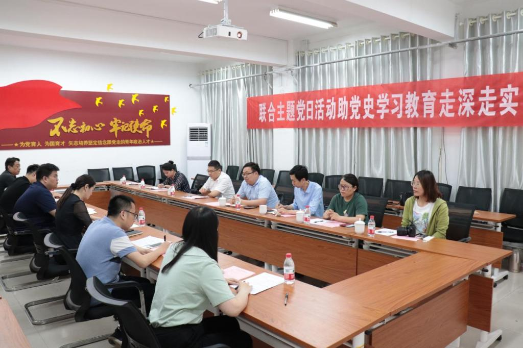 交流中,丁萍以专业为切入点,对学院正逐步推进“校地社企”四方联建共建、联合党史宣讲团、党员志愿服务等有效做法做了介绍;刘纪波从自身计财业务出发,介绍了党建引领业务,将“党委信任、行政放心、群众满意”作为目标,以着力缩小宽度、缩短长度为工作方法的工作思路,着力优化办事流程,切实为师生办实事;辛源表示,要落实好党史学习教育部署要求,结合宣传工作实际,紧密贴近师生,加大学习教育宣讲宣传力度,重视高贵精神财富,营造广泛参与的良好氛围,不断巩固党史学习教育成果;李春宝提议要共享优势资源,互通有无,加强合作,在思想碰撞中找到更多好的工作思路和办法。与会人员热烈交流,一致认为要将校际间支部联建共建引向深入,发挥各自资源优势,形成跨界组合,依托联学共建搭建更多接地气、服务师生的平台。