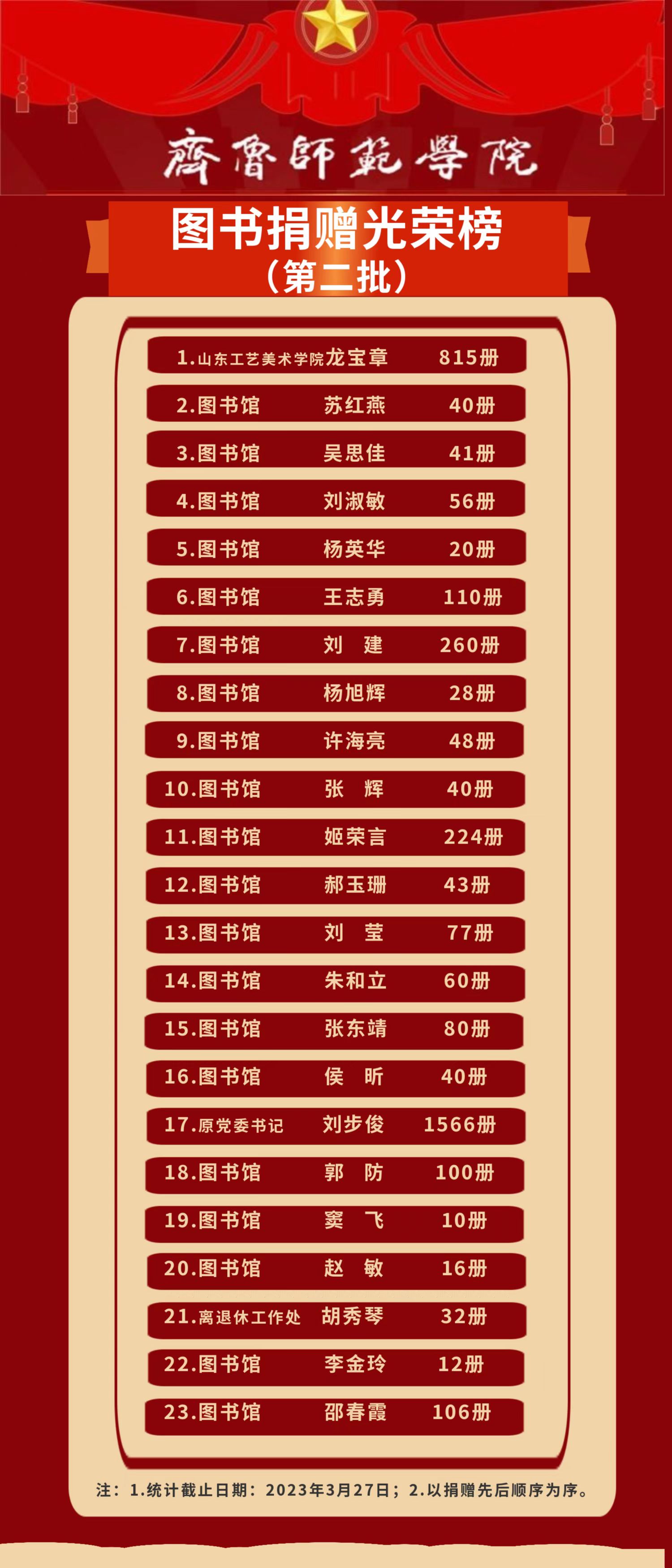 首批“JINNIAN金年会图书捐赠光荣榜”发布后,得到了师生们的积极响应,截至目前学校已收到各类捐赠图书4729册。其中,原党委书记刘步俊同志捐赠图书1566册,山东工艺美术学院龙宝章教授捐赠图书、期刊815册。