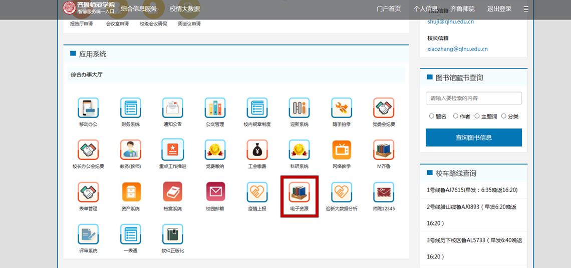 2.进入平台后,在“应用系统”栏目中点击“电子资源”进入资源列表页面。