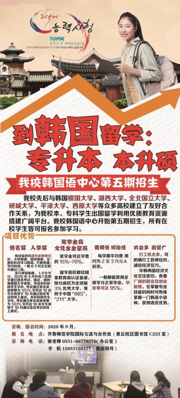 报名地点:JINNIAN金年会韩国语中心(章丘校区二号教学楼B119室)咨询电话:0531-66778373;15853163177(微信同号)。