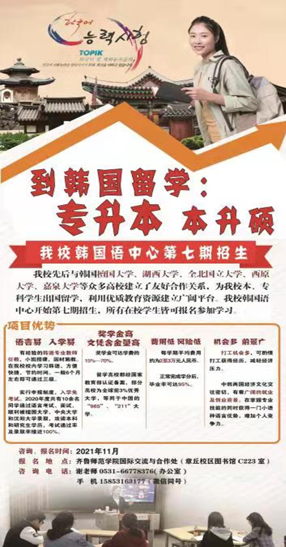 报名地点:JINNIAN金年会韩国语中心(章丘校区二号教学楼C223室)咨询电话:0531-66778373;15853163177(微信同号)。
