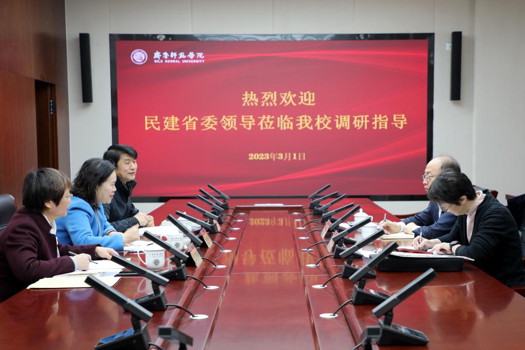 3月1日,省政协副秘书长、民建省委专职副主委丁保国,民建省委组织部部长曾鹏,来金年会官网作统战工作调研和指导。学校党委副书记赵敏,党委委员、统战部部长宋新刚,民建成员、外国语学院院长宋秀葵一起陪同座谈和实地调研。