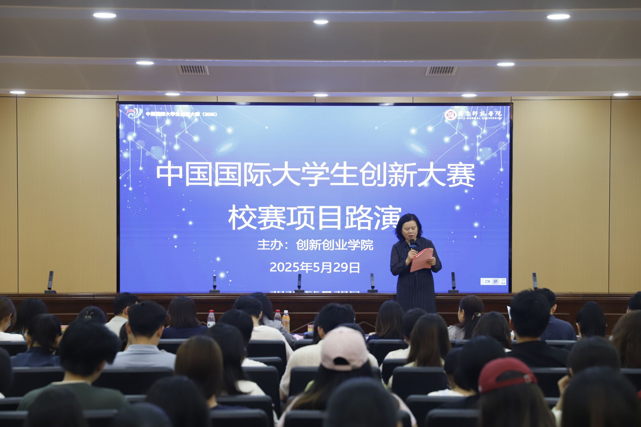 赵敏在致辞中对莅临现场的各位专家评委表示热烈欢迎,她介绍了学校基本办学情况以及近年来在创新创业教育方面取得的成绩和积极探索。她指出,校赛路演活动既是对习近平总书记殷切嘱托的生动践行,更是对新时代高等教育“为党育人、为国育才”使命的深刻诠释。希望同学们以大赛为平台,运用在课堂和实验室学到的知识解决实际问题,在创新实践中增本领,长才干,在互学互览中增进中外青年的友谊,让广大青年在中国式现代化的广阔天地中更好地展现才华。