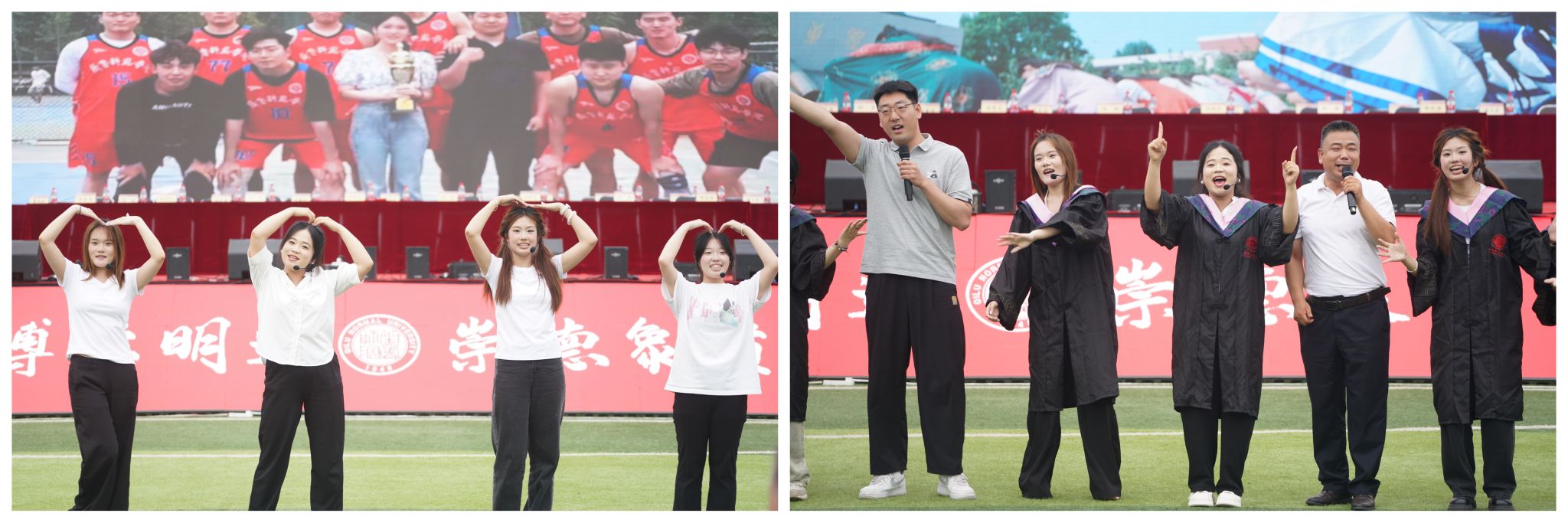 拨穗正冠承荣耀,星辰大海启新篇。学位授予仪式上,郑秀文为毕业生代表逐一拨穗正冠、授予学位证书。毕业生依次鞠躬致谢,合影留念,将这一庄严时刻定格为永恒记忆。流苏飞扬间,全场沸腾,如潮的掌声在宽阔的体育场上空澎湃激荡,经久不息。