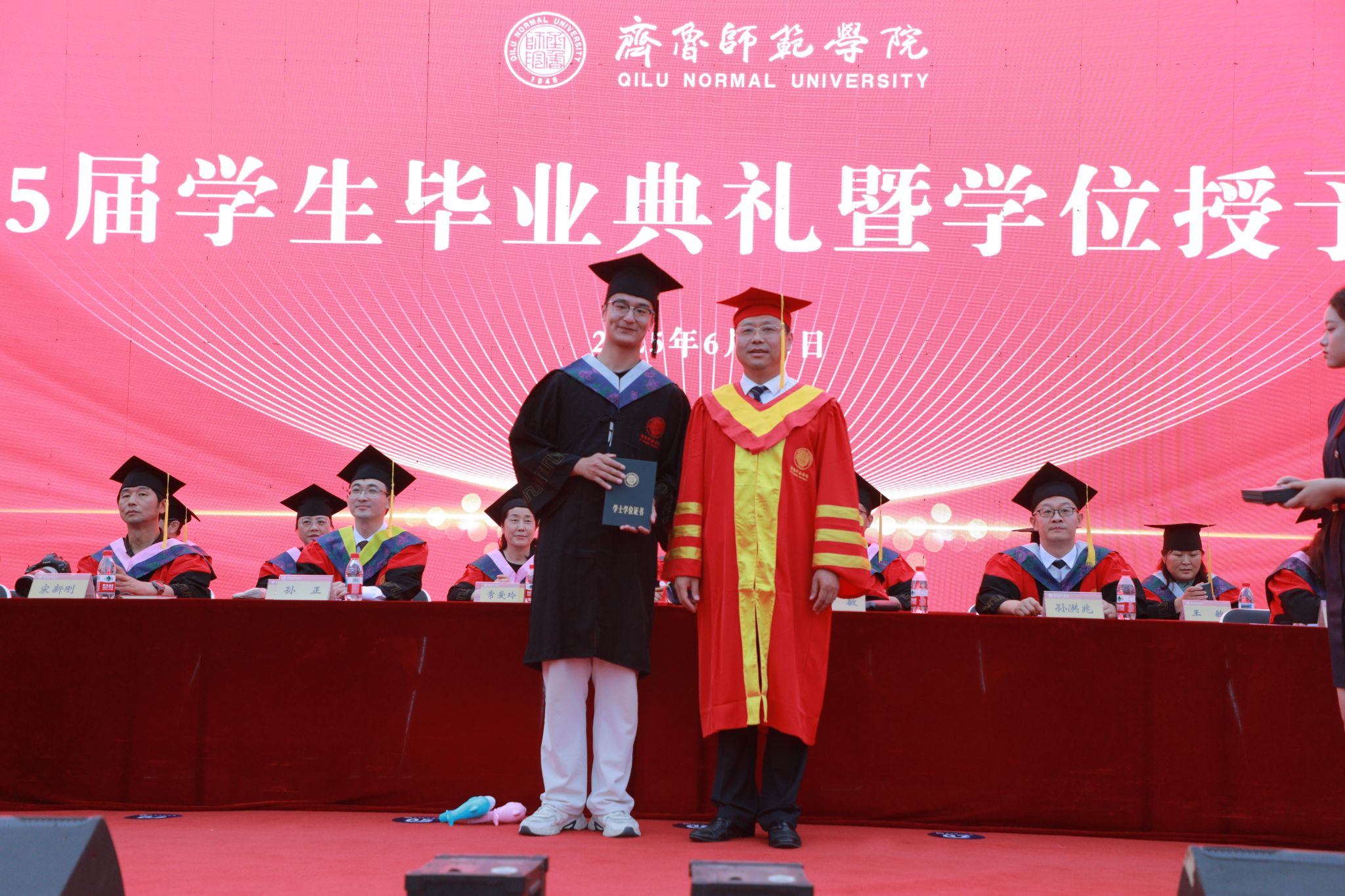 盛夏璀璨启新程,骊歌飞扬抒壮志。6月20日下午,JINNIAN金年会2025届学生毕业典礼暨学位授予仪式在章丘校区体育场隆重举行。学校党委副书记、校长郑秀文出席典礼并为2025届毕业生代表颁发证书。