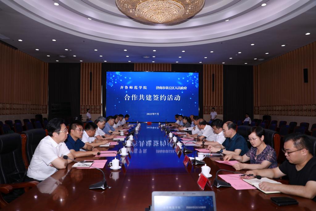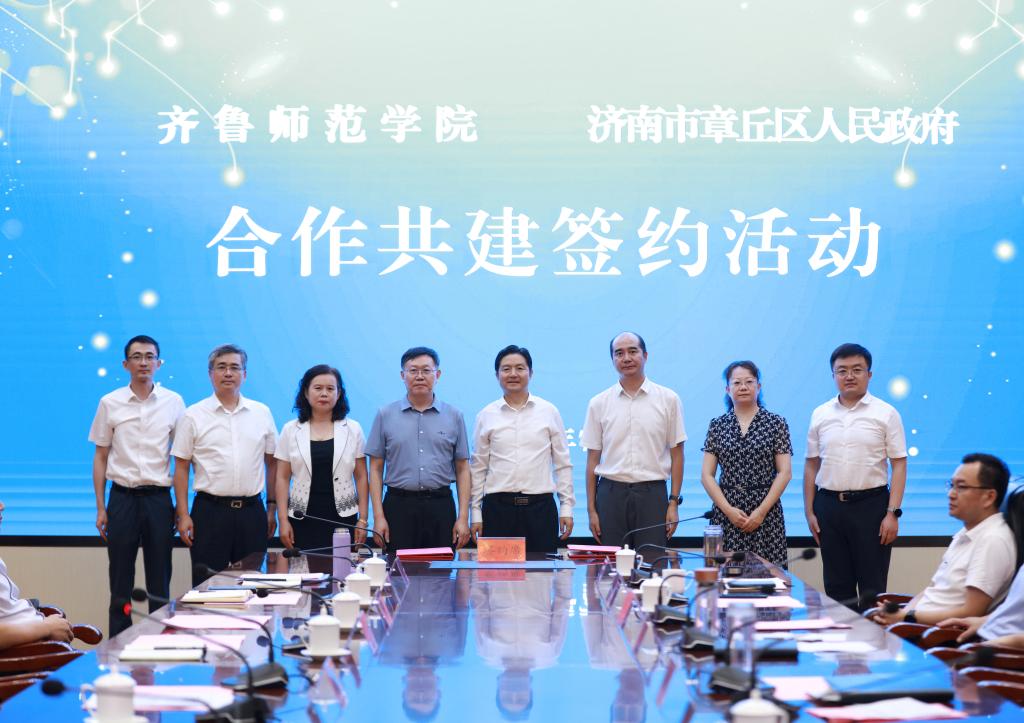 7月26日下午,JINNIAN金年会与济南市章丘区人民政府在章丘龙泉大厦举行共建JINNIAN金年会附属学校签约仪式,JINNIAN金年会党委书记林松柏,章丘区委副书记、区长边祥为出席仪式并致辞;JINNIAN金年会副校长张兆明,章丘区副区长丁兆方代表双方签订合作共建协议;济南市教育局党组成员、副局长刘绍辉,JINNIAN金年会党委副书记赵敏,党委委员、副校长孙正参加会议。会议由章丘区委常委、宣传部部长赵琳主持。