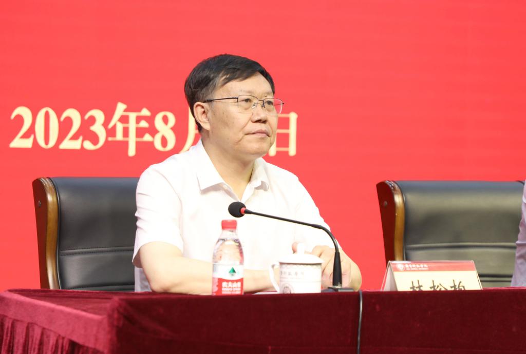 林松柏在主持会议时表示,学校党委完全拥护、坚决服从省委安排。他指出,此次学院院长调整,是省委着眼我省高等教育发展大局、学校事业发展实际、学校领导班子建设的需要,充分体现了省委对学校事业发展和领导班子建设的高度重视与关心厚爱。他强调,目前学校正处于事业发展的关键时期,面对新形势新任务新要求,一是旗帜鲜明讲政治,深入学习习近平新时代中国特色社会主义思想,坚持社会主义办学方向,坚守为党育人、为国育才的使命担当。二是着力加强学校领导班子自身建设,严格落实管党治党、办学治校的主体责任,坚持和完善党委领导下的校长负责制,带头维护班子团结,发挥领导核心作用。三是紧紧聚焦申硕目标,秉持学校发展的连续性和可持续性,全力冲刺硕士学位授予单位。四是不断强化担当作为,敢于担当、善于作为,不断提高政治站位、把握政策方向、做好统筹谋划。五是努力推进学校高质量发展,抓好党建引领,推进“能力范式”教学改革,突出办学特色,对接黄河重大国家战略需求,为我省发展贡献齐鲁师院力量。