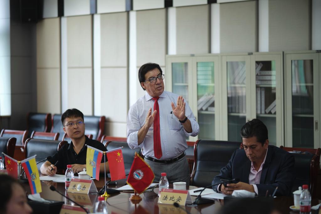 座谈会上,郑秀文首先代表学校向米格尔校长一行表示热烈欢迎,并详细介绍了学校的学科设置、师资力量、人才培养等情况。他表示,中厄两国建立了全面战略合作关系,学校非常重视与拉美国家在科教领域方面的合作,北方科技大学此次来访对学校与厄瓜多尔高校建立深厚友好合作关系具有十分重要的意义,希望在“优势互补、互惠互利”基础上,推动双方在高层次人才培养、中外合作办学、硕博联合培养、天文实验室建设等领域取得更多合作成果。