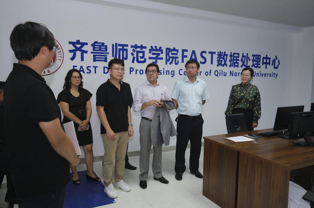座谈会后,米格尔一行参观了学校FAST数据处理中心和齐鲁探天分米波阵(QUEST),聆听了学校在天文和天体物理学研究取得的成绩后,厄方来宾赞叹不已。