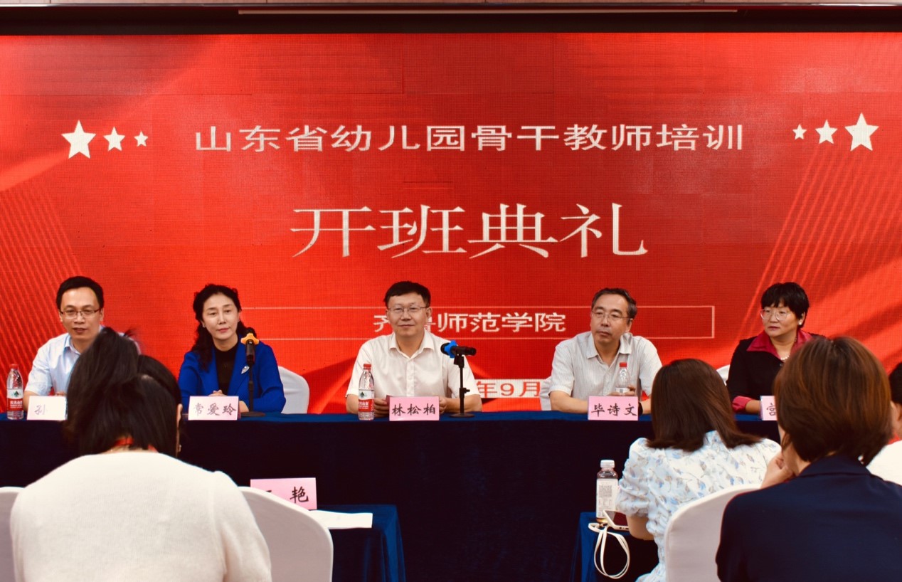9月16日上午,由JINNIAN金年会学前教育学院主办的山东省幼儿园骨干教师培训班在济南开班。学校党委书记林松柏出席开班仪式并讲话。教师教育学院院长毕诗文、学前教育学院院长常爱玲、学前教育学院副院长孙岩、幼儿园骨干教师培训首席专家宫盛花教授以及部分学院教师参加开班仪式。
