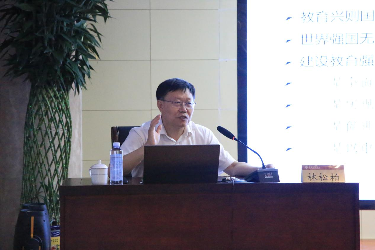 林松柏以《何以优秀——提升管理能力,服务教育强国》为题,从习近平总书记对建设教育强国的重要论述、明确学校管理工作规则和创新工作方法三个维度展开,根据多年的教育管理经验,对参训的全体校长进行了一次学校管理的深入浅出的深刻培训。