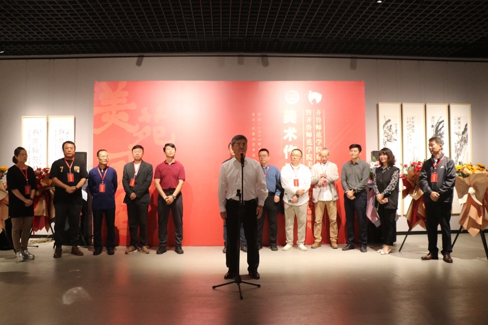 王大海在致辞中赞誉了美术学院特色发展和育人成果,感叹时境变迁、美术学院发展之快,肯定了学校为山东省基础教育和美术教育发展做出的突出贡献,对展览开幕表示祝贺,并祝愿美术学院续谱新章,更创辉煌。