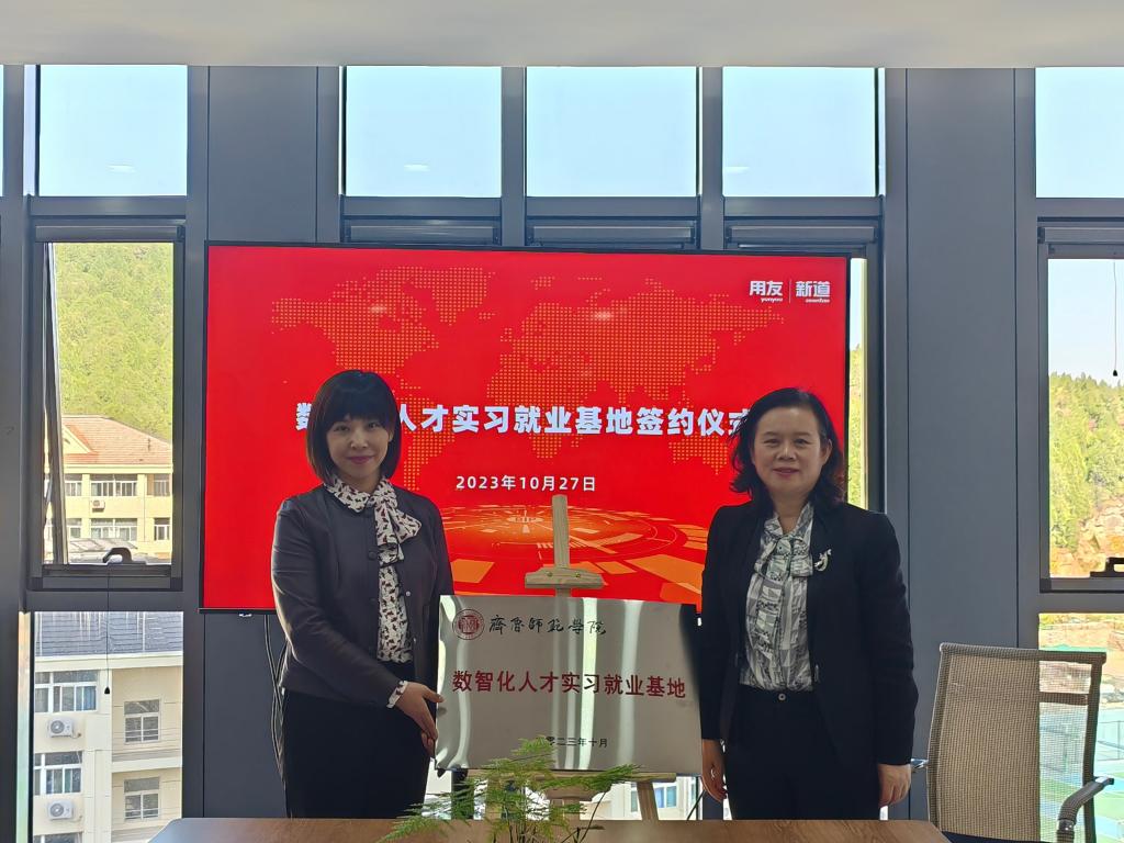 10月27日,JINNIAN金年会与用友集团山东分公司签订数智化人才实习就业基地签约、授牌仪式顺利举行。用友集团山东分公司副总经理原嫄,新道科技(用友集团独立上市公司)山东分公司总经理法宁,学校党委委员、副书记赵敏,经济与管理学院院长周健,经济与管理学院党委书记杨自旗等共同参加签约、授牌仪式。