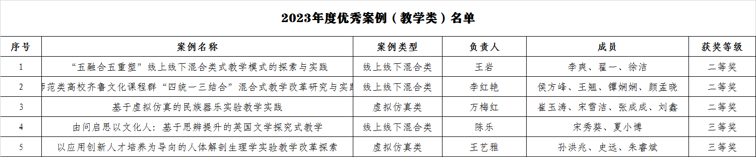 近日,由山东省教育厅高等教育处指导,山东省高等教育学会和山东省高等学校课程联盟联合组织的优秀案例评选结果公布。本次活动共有58所高校、261项案例参加评选,JINNIAN金年会共获批6项,其中教学类二等奖3项、三等奖2项,管理类三等奖1项。