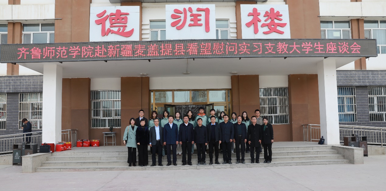期间,郑秀文一行还先后到山东省对口支援新疆工作指挥部、麦盖提县慰问学校第四批援疆实习支教师生并参加调研座谈会。郑秀文表示,学校将坚定落实省教育厅援疆支教政策,关心帮助援疆实习支教师生,加强与麦盖提县交流合作,为麦盖提县乃至新疆基础教育高质量发展作出新的更大贡献。