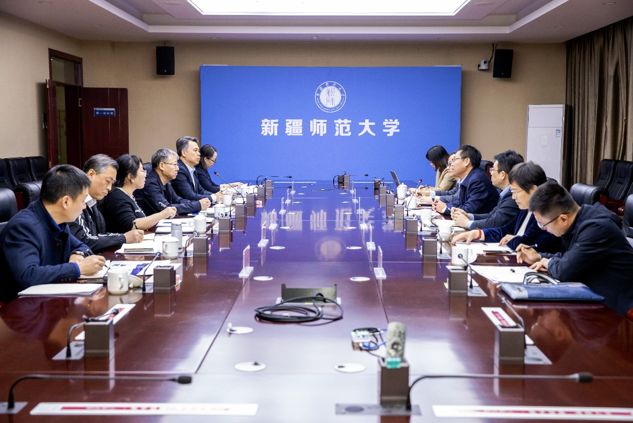 郑秀文一行首先来到新疆师范大学,在新疆师范大学党委书记葛国陪同下,先后参观了该校新时代文明实践党史学习教育基地暨马克思主义理论教育基地、心理学院实验室、黄文弼中心特藏馆,并就人才培养、学科建设、研究生联合培养等方面进行座谈交流。双方一致表示,愿意在研究生联合培养等方面开展交流合作,加快资源共享、优势互补,不断提高人才培养质量,推动两校共同发展进步。