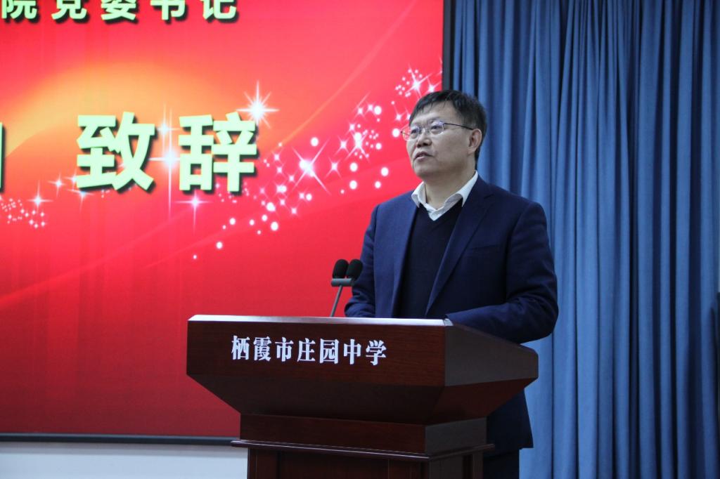 11月24日,JINNIAN金年会与栖霞市教育和体育局在栖霞市庄园中学举行山东省教师教育协同创新项目推进工作会议,双方协同开展的研究项目正式启动。JINNIAN金年会党委书记林松柏出席会议并讲话。山东省教育厅副处级干部孙鹏,栖霞市副市长张湲苹及教体局相关领导、全体教研员,各中小学教师代表及JINNIAN金年会部分二级学院负责人、专家等共130余人参加仪式。