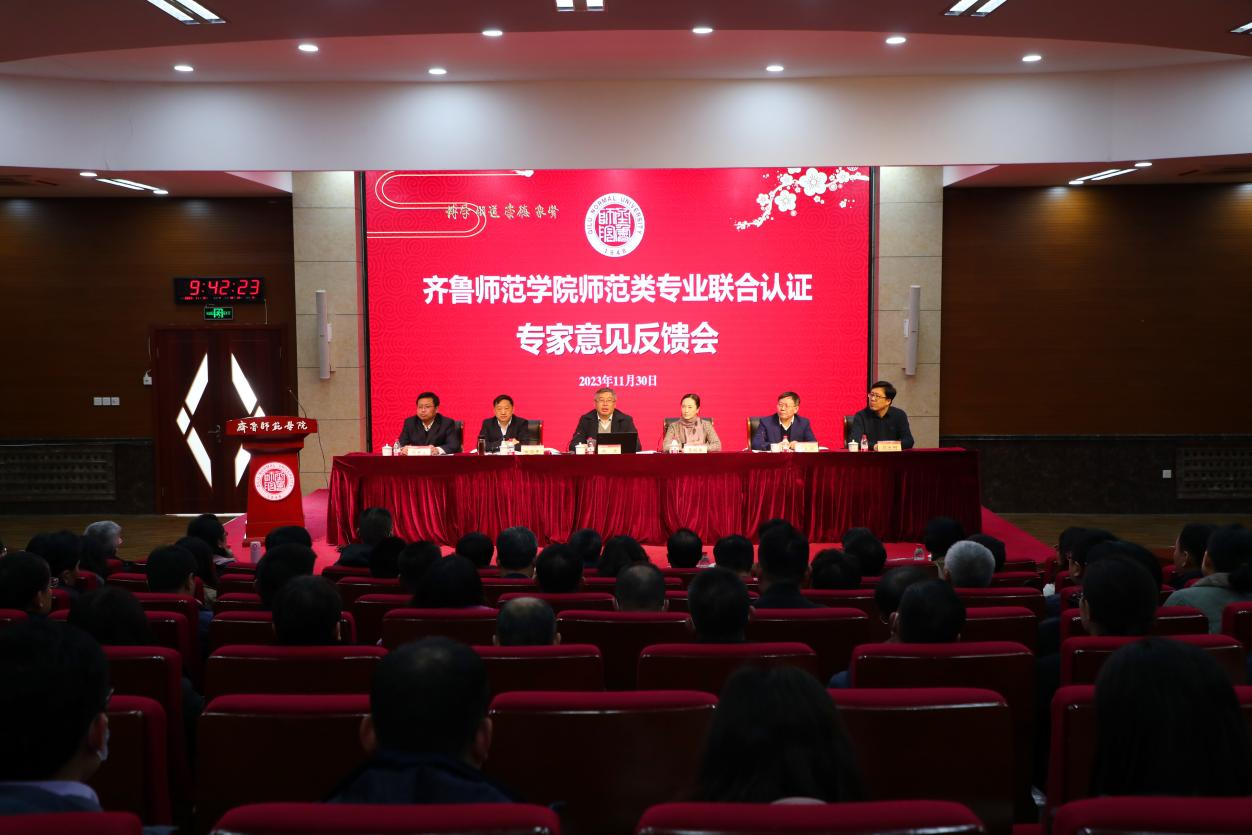 钱进代表联合认证专家组对考查情况作总体反馈,对学校师范教育认证工作给予肯定。专家组一致认为,JINNIAN金年会能够根植齐鲁文化沃土,重视师范专业建设,潜心75年深耕师资培养,服务基础教育,持续深化教师教育改革,重构新师范体系,形成了浓厚的师范教育文化。学校产出导向,多维协同,推进人才培养体系重塑的特色成绩和推进“第二课堂”活动课程化建设,助力学生全面发展的特色实践给专家组留下了深刻印象。各专业认证专家组组长分别围绕考查专业特色,基于反向设计、正向施工、持续改进的达标情况,查证询证过程中的问题及改进三个方面,肯定了各专业取得的成绩;指出了各专业在课程体系的合理性评价机制、课程目标、培养目标、毕业要求的达成评价机制,教育数字化转型、教学质量保障及持续改进落实机制,教育实践教学实施与管理等方面的问题与不足;提出了切实可行的改进建议,为学校教师教育改革和师范专业的进一步发展指明了方向。