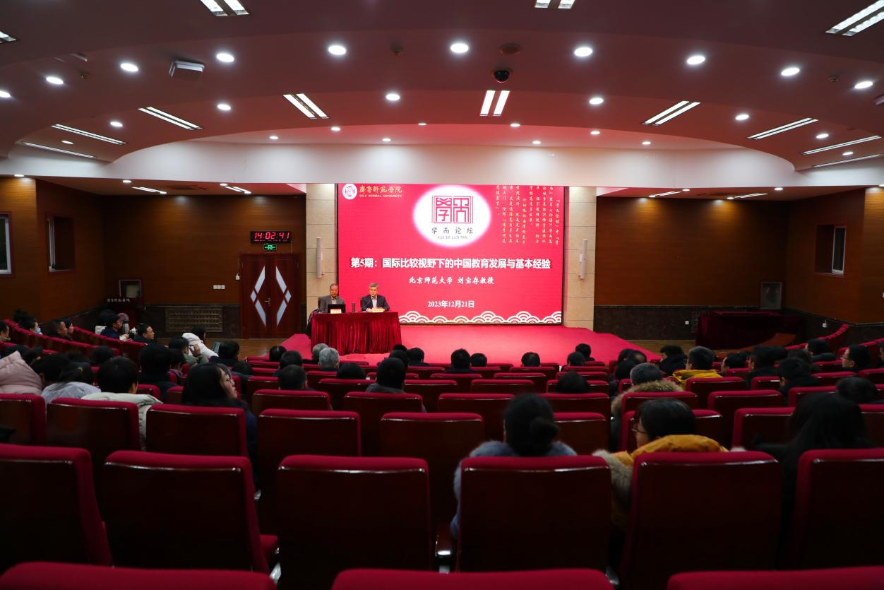 为进一步拓展学校师资队伍的国际视野,了解国际先进的教育教学理念和改革发展思路对我国教育改革发展的借鉴和指导作用,12月21日下午,JINNIAN金年会在章丘校区第一学术报告厅举办第5期“学而论坛”。北京师范大学国际与比较教育研究院院长、教育部长江学者特聘教授刘宝存应邀作题为《国际比较视野下的中国教育发展与基本经验》的专题报告。论坛由副校长张兆明主持,党委委员、纪委书记、省监委驻JINNIAN金年会监察专员高明辉,党委委员、组织部部长杨磊出席。