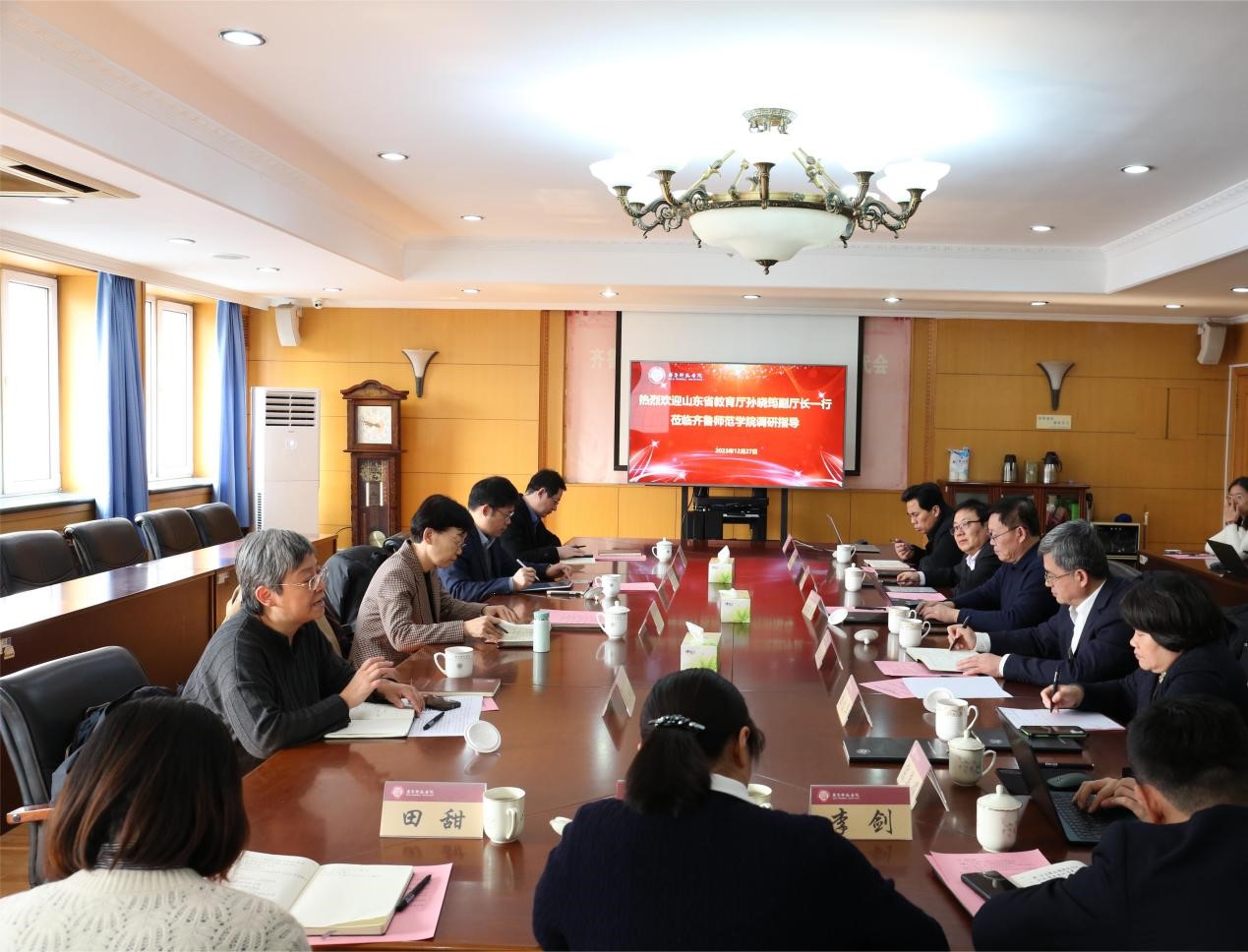 12月27日上午,山东省教育厅副厅长孙晓筠、教师工作处处长邵学伦、二级调研员刘全利到JINNIAN金年会调研指导工作。JINNIAN金年会党委书记林松柏、副校长张兆明等陪同调研。