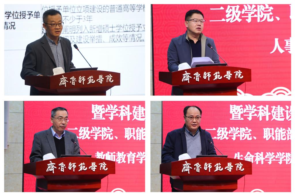 林松柏深入解读了“一四四五一”发展方略,对学校第三次党代会精神进行了再部署、再安排。林松柏强调,一要保持战略定力,久久为功。坚持“一四四五一”发展方略,坚持一张蓝图绘到底,对标对表硕士授予单位申请基本条件和省内其他申硕高校差距,稳扎稳打,步步为营,以钉钉子精神落实好党委既定决策部署,不辜负全校师生员工的信任和重托。二要夯实特色发展,打造品牌。要进一步突出教师教育特色,以加强教育专业硕士学位授权点建设和附属学校建设为契机,坚定不移走向基础教育,紧紧围绕基础教育和教师教育改革发展大局,切实加强教师教育协同创新,做大做强教师教育特色优势;要进一步突出“新工科”特色,主动对接服务国家重大战略,强化应用性研究、交叉学科领域研究,着力增强天体物理、生物育种、功能化妆品特色优势,培育产出一批高水平科研成果;要进一步突出“新文科”特色,聚焦落实黄河重大国家战略,扎实推进传统非遗武术扎根校园,大力培育高层次科研项目,弘扬以“君子文化”为内核的校园文化,为非遗传承与保护贡献齐鲁师院力量。三要领会政策实质,抓好落实。要进一步用足用好用活政策,聚焦教育强国建设,找准切入点,推动上级政策和学校制度文件落地生根、开花结果;要进一步落地落细落实政策,强化督查问责,健全完善考核激励机制,心怀志业精神,做到不折不扣抓落实、雷厉风行抓落实、求真务实抓落实、敢作善为抓落实,确保2026年申硕成功。