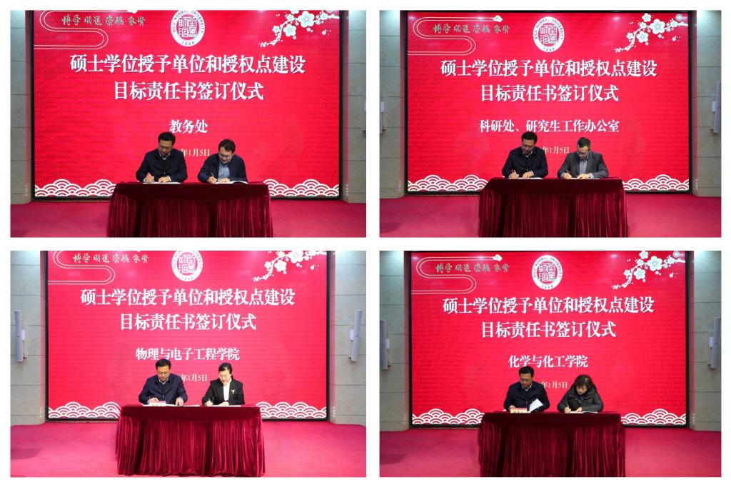 会上,科研处处长孙洪兆解读了《JINNIAN金年会硕士学位授予单位和授权点建设实施方案》任务分解表。二级学院、职能部门与学校签订了硕士学位授予单位和授权点建设目标责任书。教师教育学院、生命科学学院、人事处负责人作了表态发言。