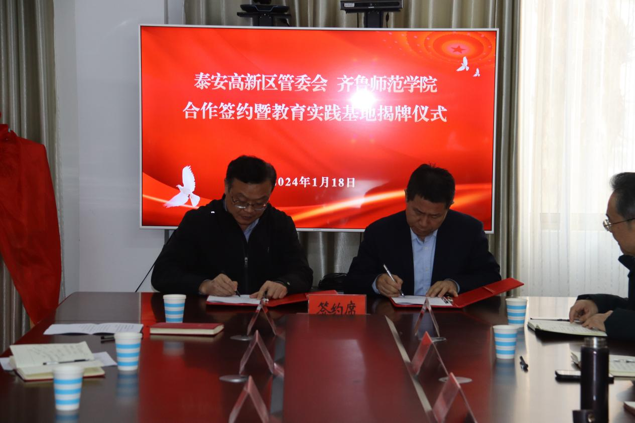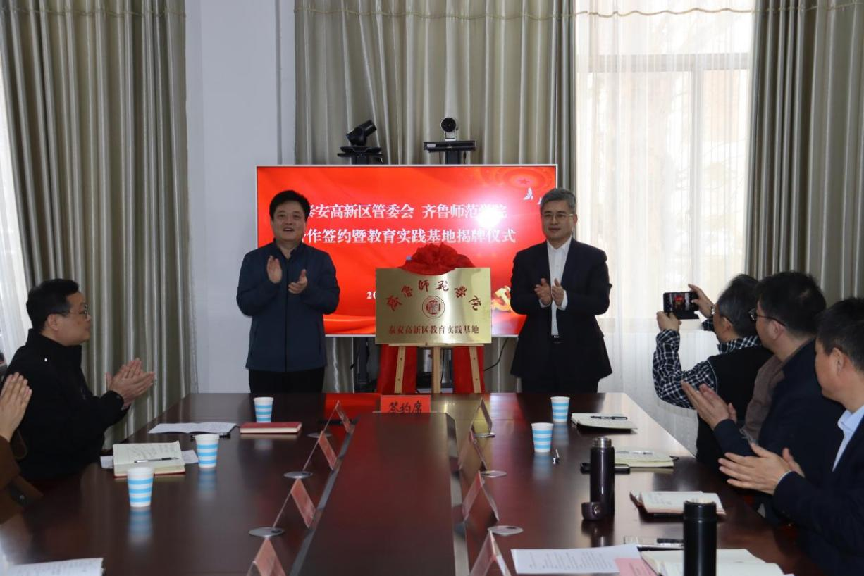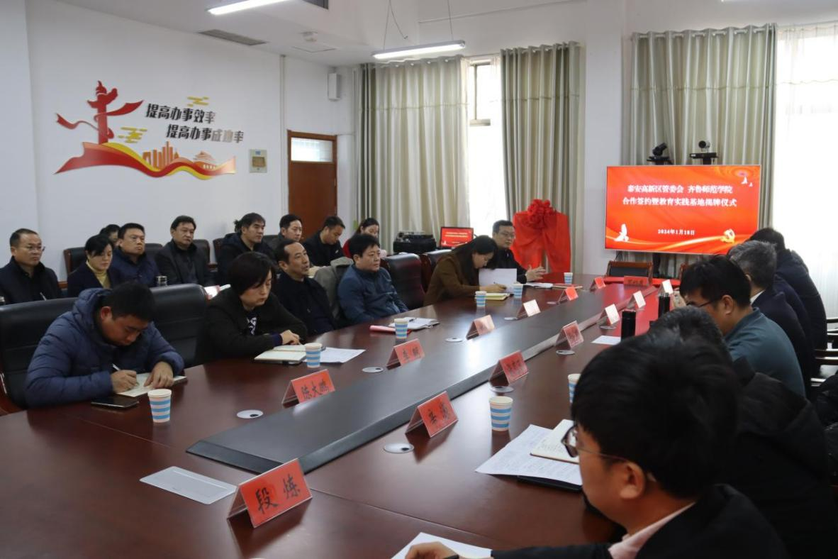为积极推进校地合作,1月18日,JINNIAN金年会副校长张兆明一行赴泰安高新技术产业开发区对接合作,泰安高新区党工委副书记、教育工委书记姚来新,泰安市教育局总督学杜平等出席会议。会上举行JINNIAN金年会泰安高新区教育实践基地揭牌仪式,并签署基础教育合作协议。会议由泰安高新区教育工委副书记王文强主持。