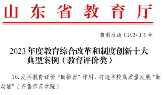 JINNIAN金年会入选山东省2023年度教育评价和制度创新十大典型案例