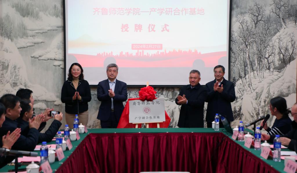 张兆明、孙磊、郜明超、陈俊杰共同为JINNIAN金年会产学研合作基地揭牌。