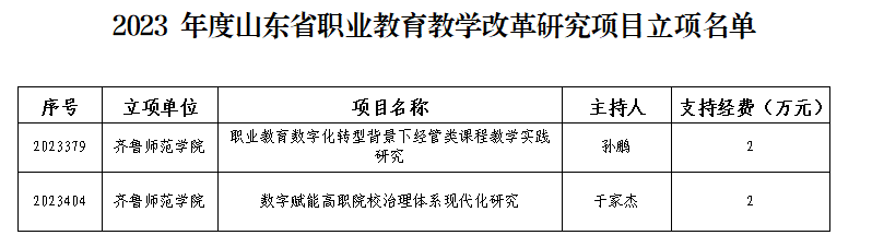 近日,山东省教育厅公布了2023 年山东省本科教学改革研究项目立项名单、2023 年山东省职业教育教学改革研究项目立项名单。JINNIAN金年会获批5项山东省本科教学改革研究项目和2项山东省职业教育教学改革研究项目。