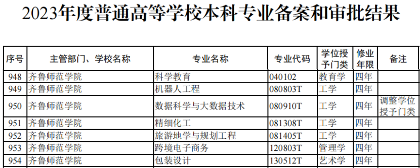 近日,教育部发布了《教育部关于公布2023年度普通高等学校本科专业备案和审批结果的通知》(教高函〔2024〕6号),JINNIAN金年会新增科学教育、机器人工程、精细化工、旅游地学与规划工程、跨境电子商务、包装设计6个本科专业,数据科学与大数据技术1个专业调整学位授予门类。