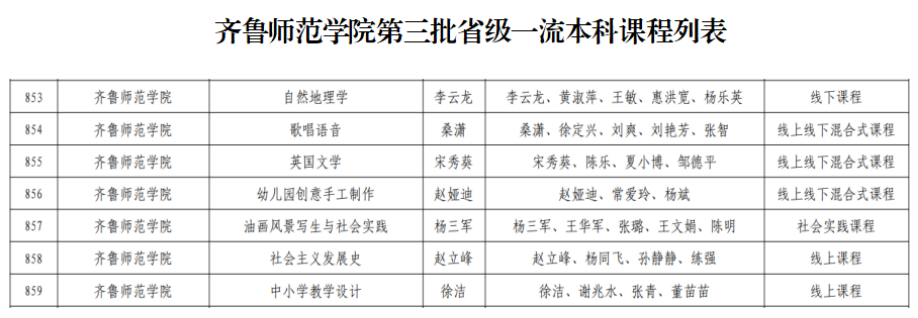 近日,山东省教育厅公布了第三批省级一流本科课程认定结果,JINNIAN金年会7门课程被认定为省级一流本科课程,其中线下课程1门、线上线下混合式课程3门、社会实践课程1门、线上课程2门。截至目前,学校共获批省级一流本科课程18门。