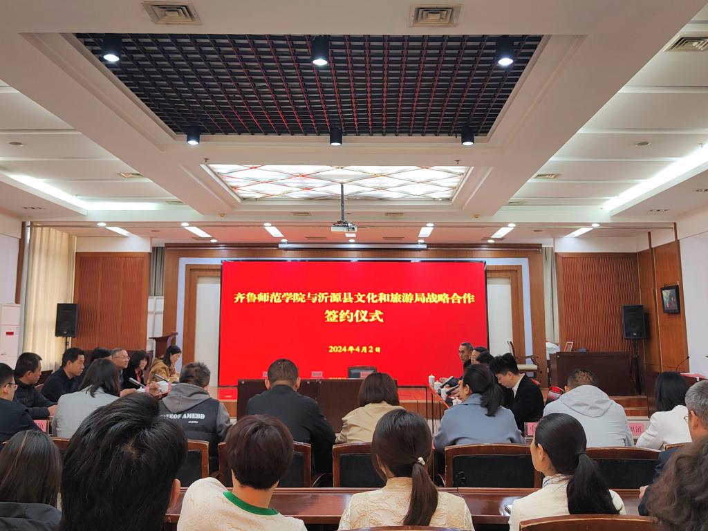 沂源县文化和旅游公共服务中心主任唐慎军与学校地理与旅游学院院长王敏代表双方签署《沂源县旅游资源普查项目合作协议》。