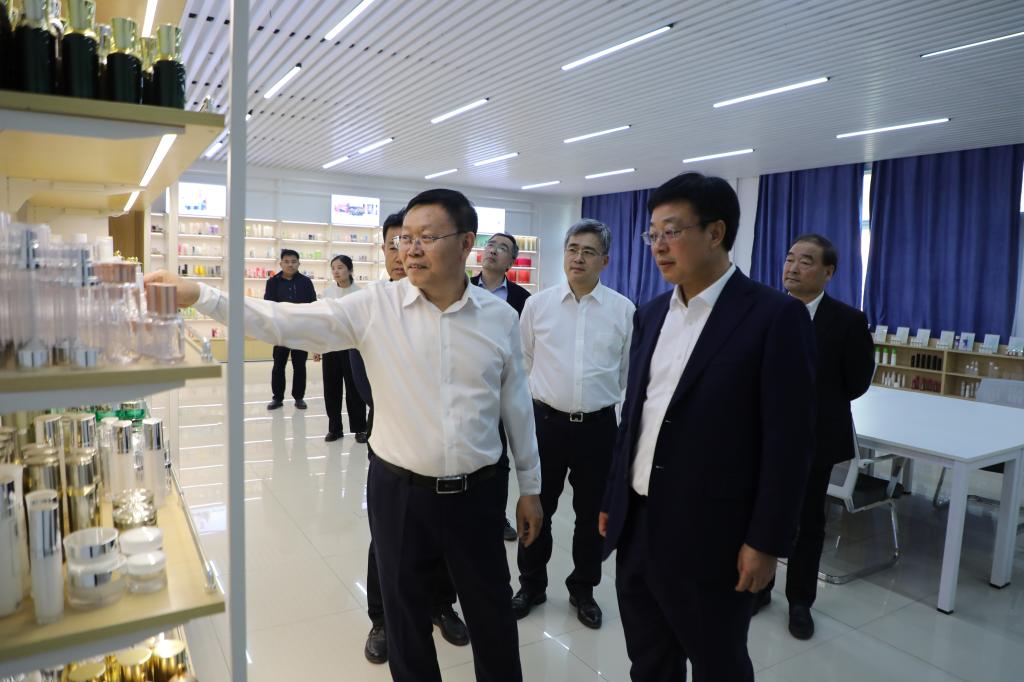 座谈交流前,刘运一行实地参观了学校齐鲁文化长廊、化妆品中心、玉米分子育种研究院。