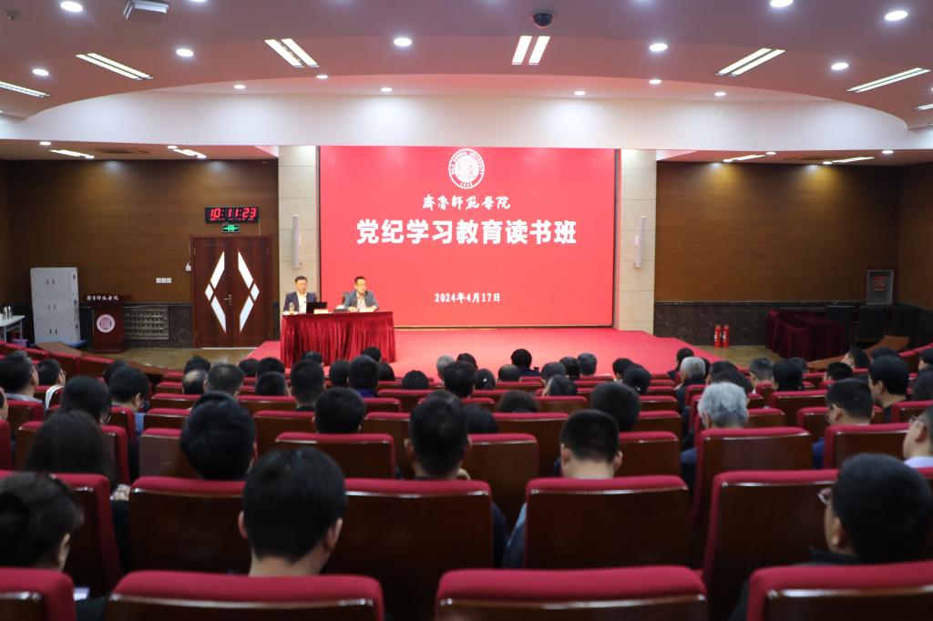 4月17日,JINNIAN金年会举办党纪学习教育读书班。党委书记林松柏出席并作题为《学〈条例〉守党纪》的专题辅导报告。读书班由党委委员、纪委书记、省监委驻JINNIAN金年会监察专员高明辉主持,学校领导、全体处级干部参加。