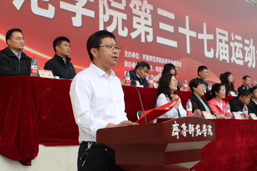 党委副书记、校长郑秀文致开幕辞。他代表学校及大会组委会,向为本次运动会筹备工作付出辛勤劳动的老师和同学们表示衷心感谢。向刻苦训练、积极参赛的全体运动员,以及严守规程、公正执法的裁判员致以亲切问候。郑秀文指出,近年来学校深入学习贯彻习近平总书记关于体育工作的重要指示精神,大力发展学校体育事业,总结了学校体育育人工作的突出成绩,为建设体育强国贡献了齐鲁师院力量。郑秀文表示,希望全体师生大力弘扬中华体育精神,秉承教育强国、体育兴国梦想,为“强校兴国”注入澎湃的青春动能;希望全体运动员遵守规则、尊重对手、尊重裁判、尊重观众,安全参赛、文明参赛、规范参赛;希望全体裁判员公平审判,公正执法,树立安全第一意识、热情服务意识、严守规则意识,确保竞赛的顺利进行,把本次运动会办成一次运动成绩和精神文明双丰收的高水平运动会。