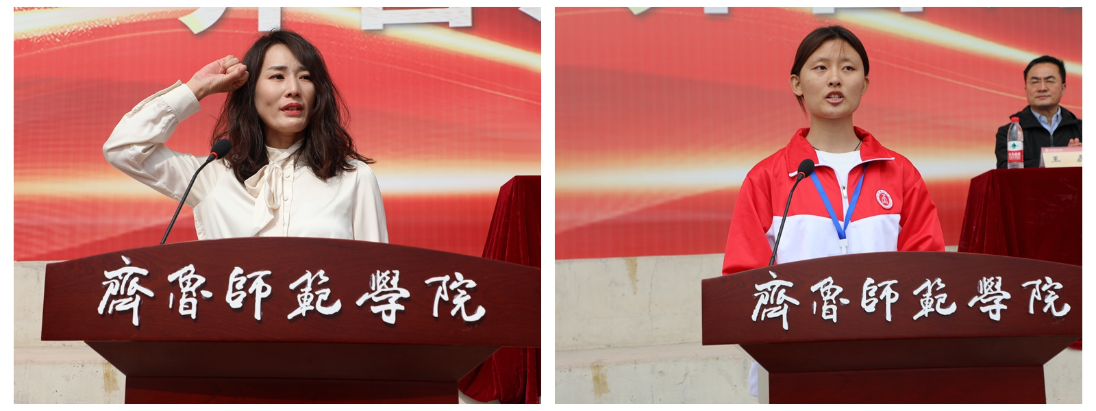 体育学院教师李娜、学前教育学院2023级学生王亦琛分别代表裁判员和运动员宣誓。