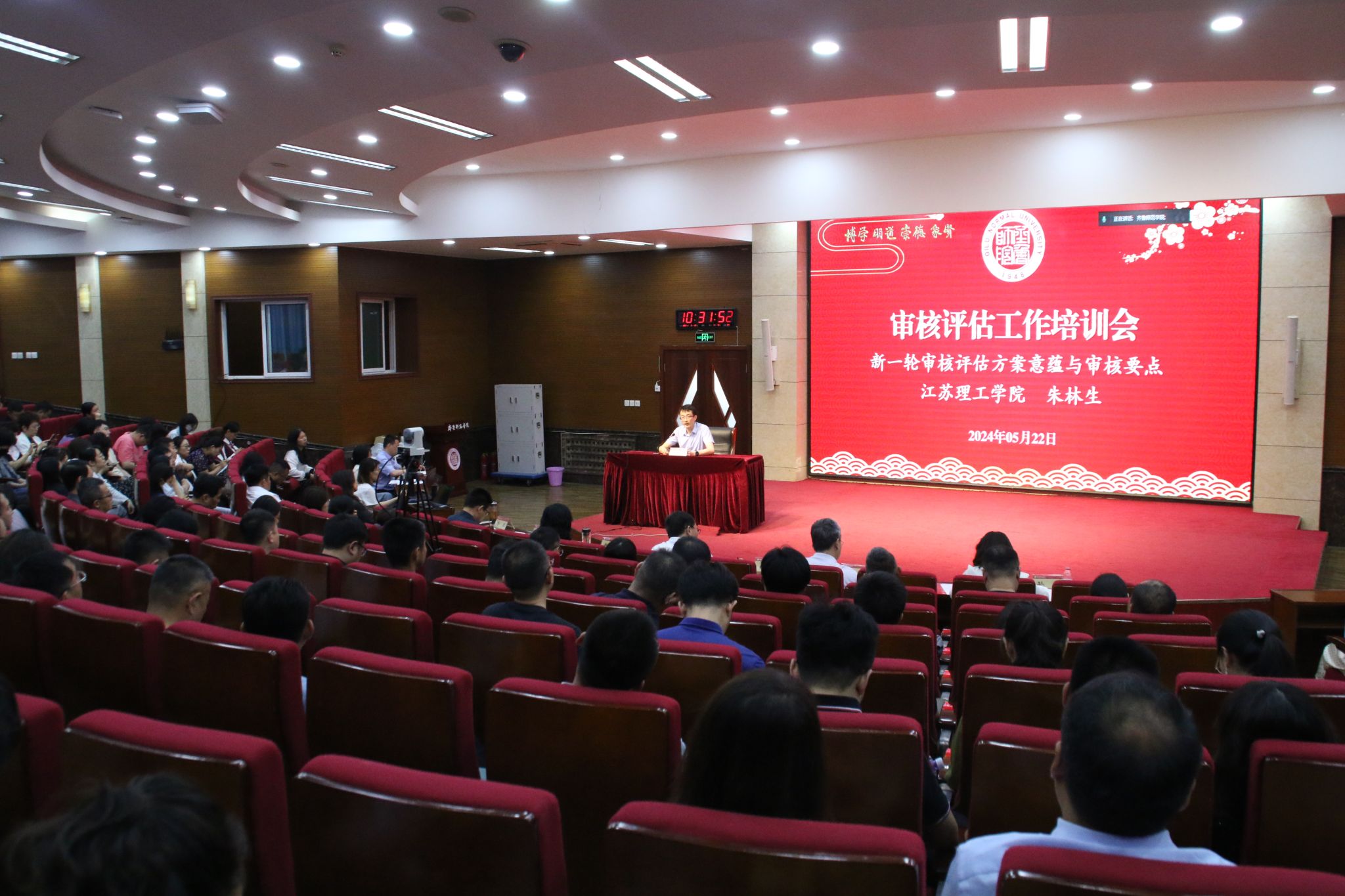 会议第一阶段由江苏理工学院原党委书记、教育部普通高等学校本科教育教学审核评估专家委员会委员朱林生作《新一轮审核评估方案意蕴与审核要点》专题报告。他详细介绍了审核评估的背景及主要内容,结合新一轮审核评估的主要特点,着重围绕指标体系,从突出立德树人、重视分类指导、重视教学改革、聚焦学生发展、引导保障体系建设、体现“五个度”等六大核心意蕴作了系统阐释,并就审核评估的过程与注意事项提出了宝贵意见。报告对学校审核评估自评自建、线上评估、入校评估、评估整改等工作具有极强的指导意义。