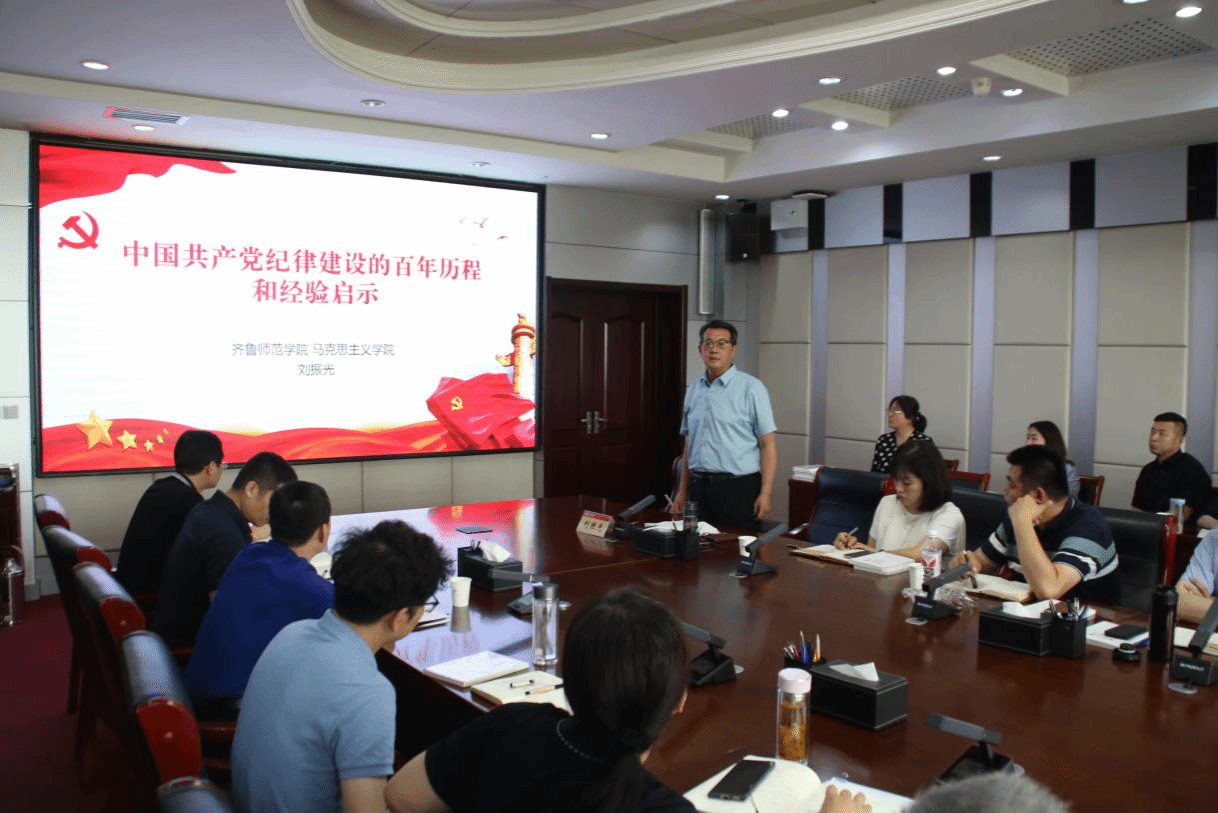 培训班邀请马克思主义学院刘振光教授作党纪学习教育报告,他以《中国共产党纪律建设的百年历程和经验启示》为题,为全体参训人员辅导授课,教育大家牢记党的宗旨,坚定理想信念,不断增强纪律观念、规矩意识,坚守纪律底线。纪委副书记于绍军作题为《加强年轻干部教育管理监督 确保其先进性和纯洁性——扣好成长成才的“第一粒扣子”》的专题报告,通过大量的年轻干部违纪违法案例,教育全体纪检干部要坚守底线、不越红线、不碰高压线,始终把政治纪律和政治规矩挺在前面。