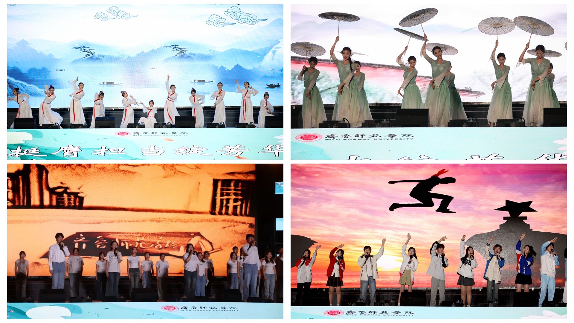 展演以中华优秀传统文化中的“梅兰竹菊”花中四君子为主线,通过舞蹈、声乐、朗诵、武术等多种艺术表现形式呈现。舞蹈《风华正茂》《生来倔强》、竞技健美操《灼灼韶华》展现了师院青年朝气蓬勃、昂扬向上、锐意进取的青春风采;歌曲演唱《梅如傲骨》《不辞青山》《金蕊流霞》勉励青年学子感恩砺志、实干为先;音诗画《师泽如山》表达了对母校的眷恋和对老师的感恩之情;舞蹈《雨涧春行》《竹石风骨》清新高雅,刚柔并济,展现了师院学子深厚的艺术修养和坚毅的君子品格;木兰武舞《巾帼力量》,表达了师院学子的家国情怀和奋斗精神。