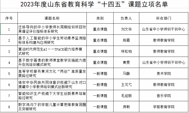 学校喜获8项2023年度山东省教育科学“十四五”规划课题
