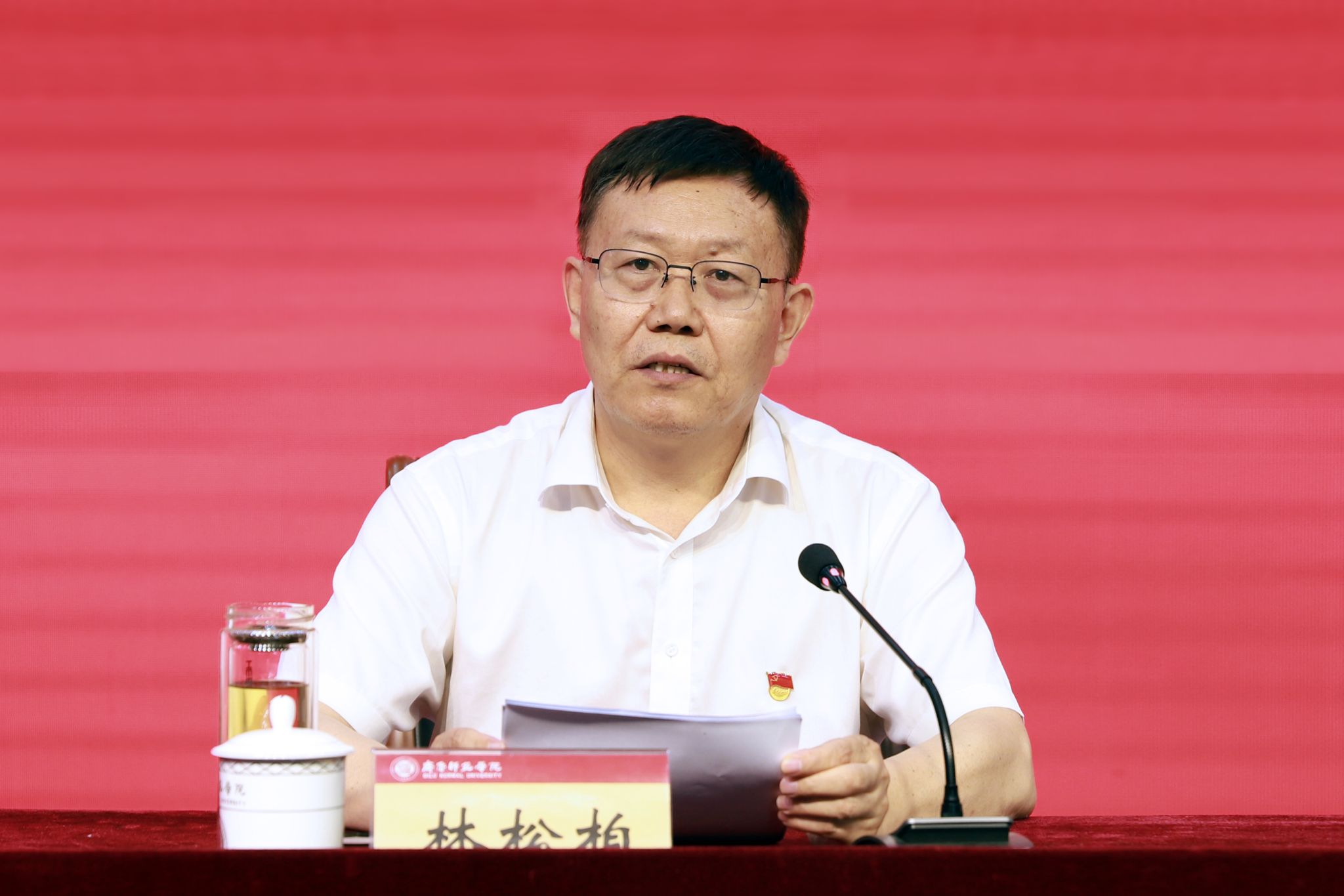 林松柏强调,一是聚焦发展目标,深入推进“一融双高”建设。各级党组织和广大党员干部要紧紧围绕学校申硕发展目标,深入推进党建与人才培养深度融合、党建与科研深度融合、党建与社会服务深度融合。二是注重改革创新,着力增强基层党组织的战斗力创造力。要进一步压实工作责任,强化党委(党总支)的政治功能,切实肩负起改革创新引领党建高质量发展的主体责任,建强推动发展的战斗堡垒。三是强化担当作为,充分发挥党员的先锋模范作用。要着力加强和改进党员作风,使广大党员干部坚定理想信念,牢记初心使命,强化担当作为,带头团结奋斗,锤炼纪律作风,筑牢思想防线,打造一支奋发有为的党员干部队伍,在实现学校发展目标中不忘初心、锐意进取,在推进学校高质量发展中再立新功。
