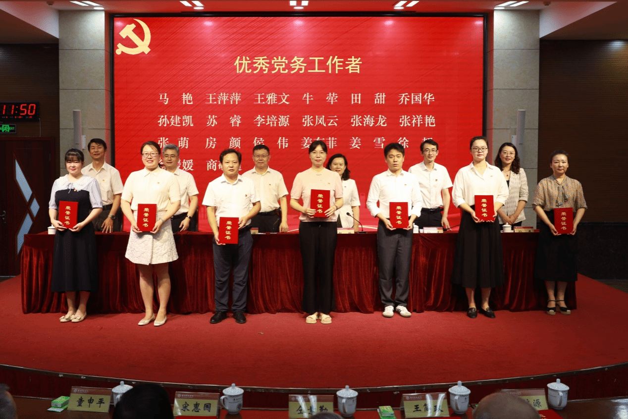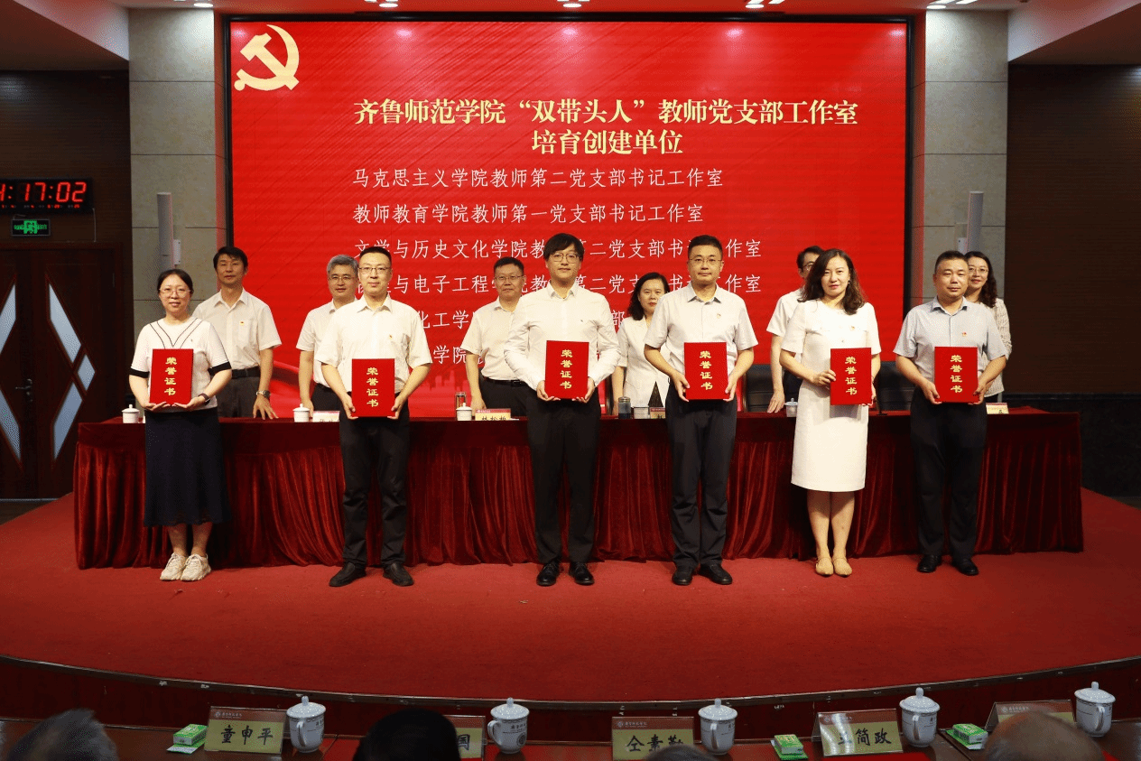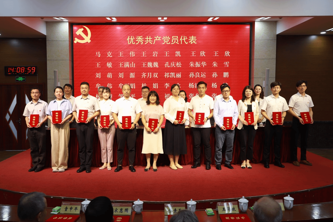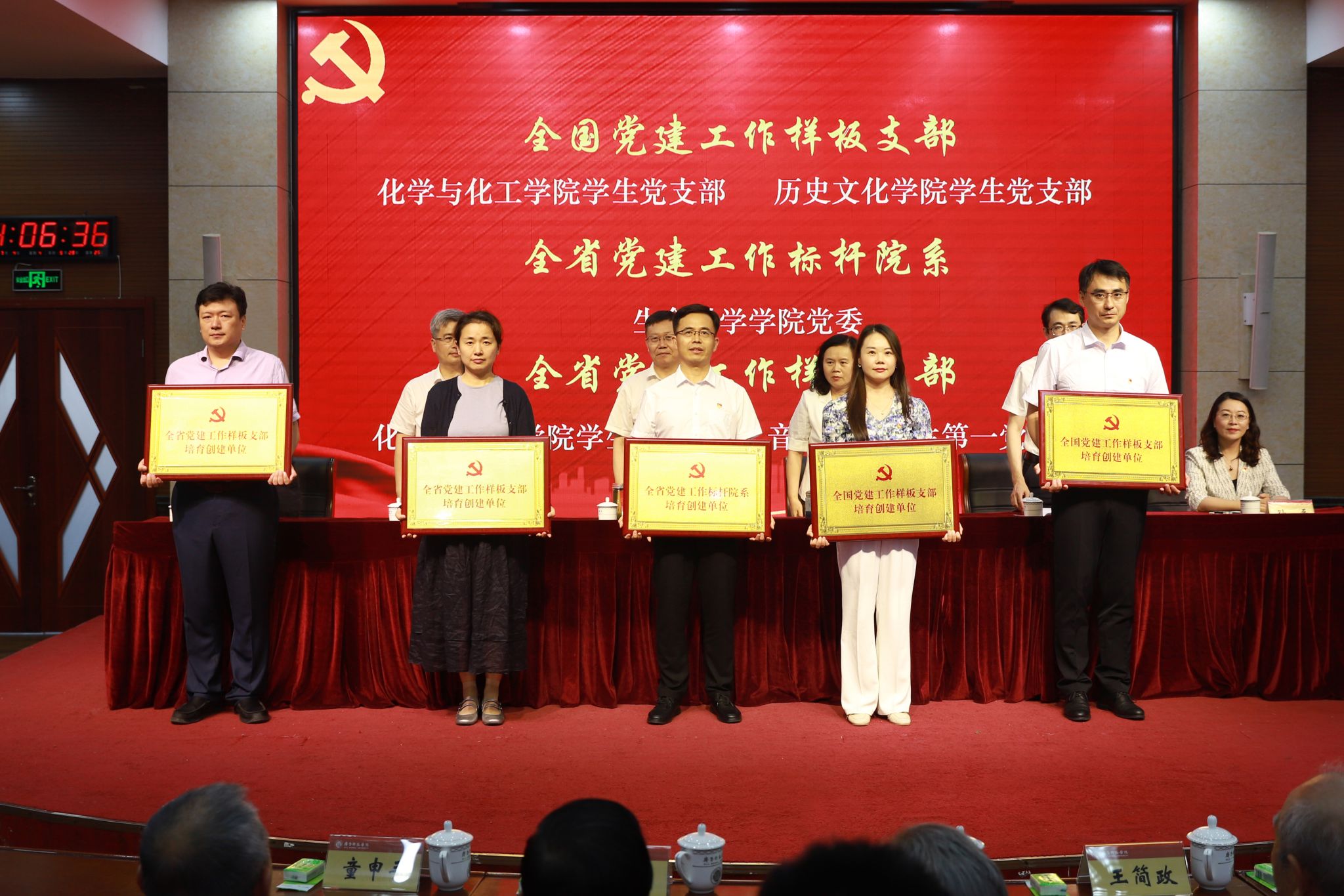党委委员、副校长孙正宣读了《中共JINNIAN金年会委员会关于表彰2022-2023年度优秀共产党员、优秀党务工作者、先进基层党组织的决定》以及《关于公布JINNIAN金年会党建工作“样板支部”培育创建单位、“双带头人”教师党支部书记工作室名单的通知》,与会领导为受表彰单位及个人颁发荣誉证书、奖牌。