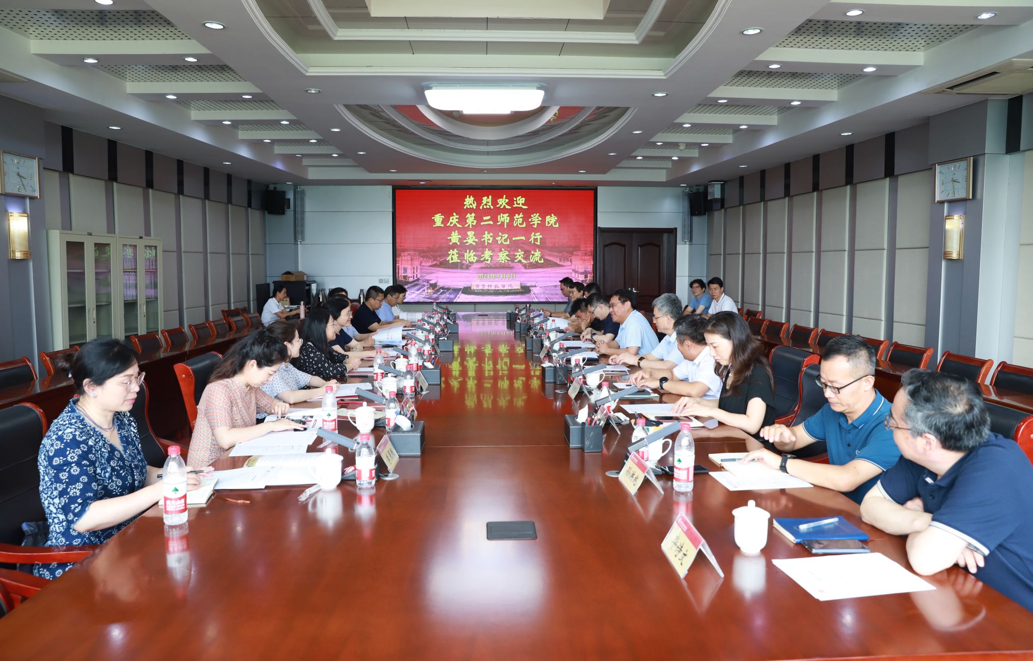 7月9日下午,重庆第二师范学院党委书记黄晏一行10人来校考察交流。学校党委副书记、校长郑秀文,副校长张兆明,党委委员、副校长孙正热情接待来访。双方就进一步加强合作、共谋发展举行座谈。座谈会由张兆明主持。