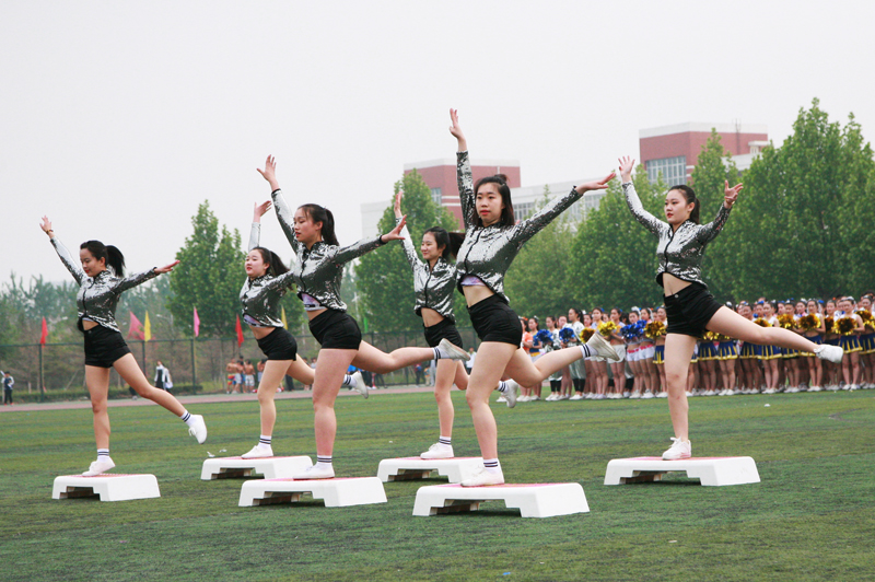 开幕式上,来自各学院的500余名学生进行了大型啦啦操表演,其中穿插进行了踏板操、健美操、艺术体操、健身健美以及由教职工组织的“澎湃”乐队和音乐教师带来的精彩演奏和演唱。
