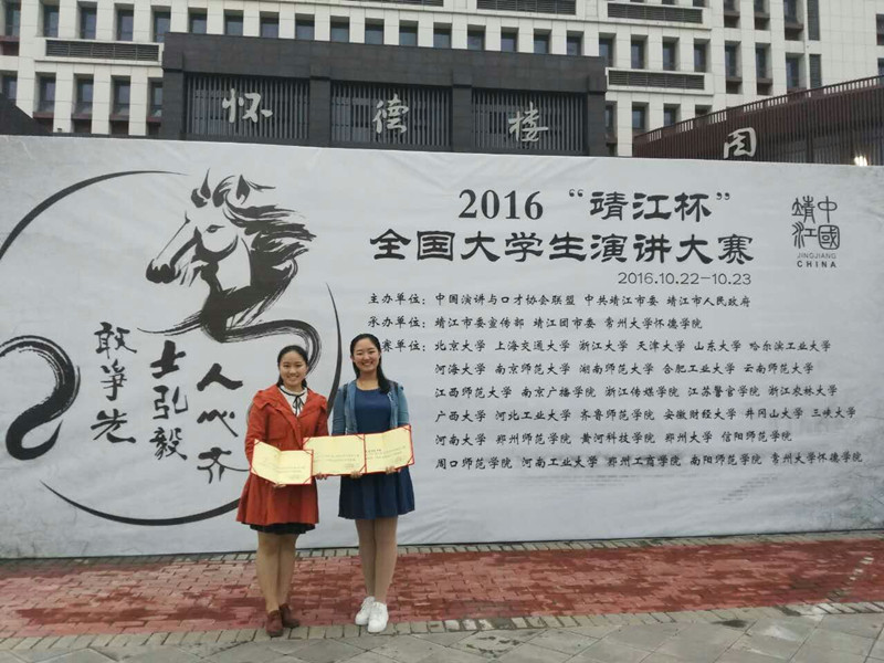 10月22日至10月23日,由中国演讲口才协会联盟、中共靖江市委员会、靖江市人民政府主办,中共靖江市委宣传部、共青团靖江市委员会、常州大学怀德学院承办的2016“靖江”杯全国大学生演讲大赛于常州靖江举行。金年会官网经济与管理学院曲彦青和教师教育学院孙萌参加了本次大赛,均获三等奖。金年会官网代表队获得了团体三等奖的成绩。
