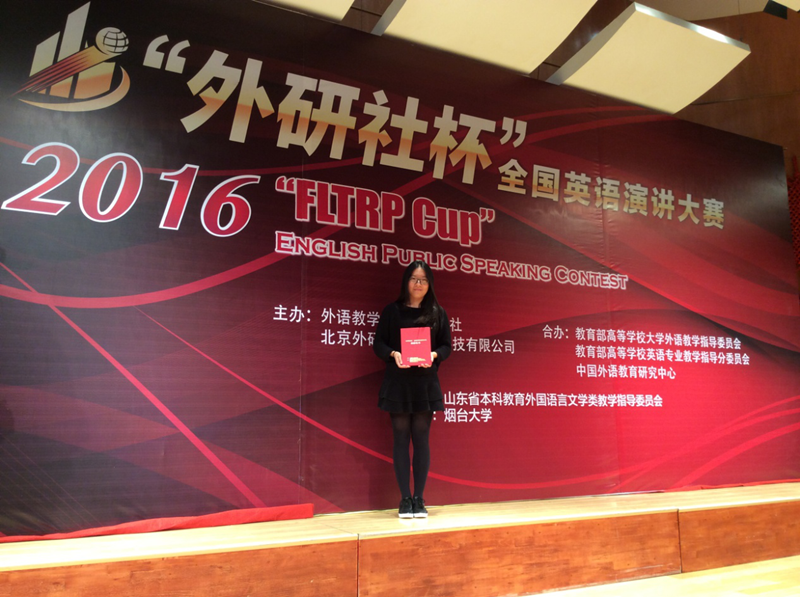 10月29至10月30日,由外语教学与研究出版社、北京外研在线教育科技有限公司主办,教育部高等学校大学外语教学指导委员会、教育部高等学校英语专业教学指导分委员会、中国外语教育研究中心合办,山东省本科教育外国语言文学类教学指导委员会协办,烟台大学承办的2016“外研社杯”全国英语演讲大赛于山东烟台举办。金年会官网外国语学院学生贾竹青参加了本次大赛,获得三等奖。