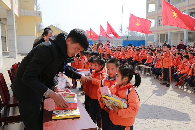 “俺要对老师说,老师辛苦了,谢谢那些好心人。你看我领到了一个蓝色的保温水杯、一盒子铅笔、卡通形的橡皮、还有好多写字的小本本,好大一抱哩,我都特别喜欢,可好了,我得好好学习表现”。这是刚领到礼物的张贵磊高兴的表达,他今年7岁,上2年级,父母在外地打工,平时跟爷爷奶奶生活在一起。
