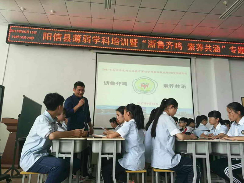 5月19日—20日,17名浙江美术教师在省中小学师训干训中心有关负责同志,金年会官网宣传部部长、美术学科首席专家宋新刚,美术学院副院长杨三军、办公室主任刘芳及美术学科专家苏美荣、迟瑞华老师的陪同下,分赴到济南平阴、潍坊临朐、滨州阳信、济宁汶上、日照莒县、临沂莒南六个项目县,参加山东省农村义务教育教师学科教学技能培训送教活动。浙派名师分别为每个项目县乡村教师送了一堂课例观摩,一场名师专题讲座,并进行研讨交流。