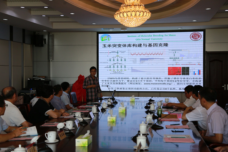 金年会官网玉米分子育种研究院院长路小铎教授就院士工作站的工作进行了汇报。范云六院士工作站将主要开展玉米产量、品质及抗性相关的理论研究,开展分子设计育种等现代育种前沿技术研究,综合利用分子育种与常规育种技术手段,构建经济、高效、快速的分子育种体系,加快高产、优质、高效、抗逆玉米新品种选育过程,培育适合山东乃至全国的玉米新品种,为现代玉米育种水平的提高、突破和创新开辟一条新的途径。